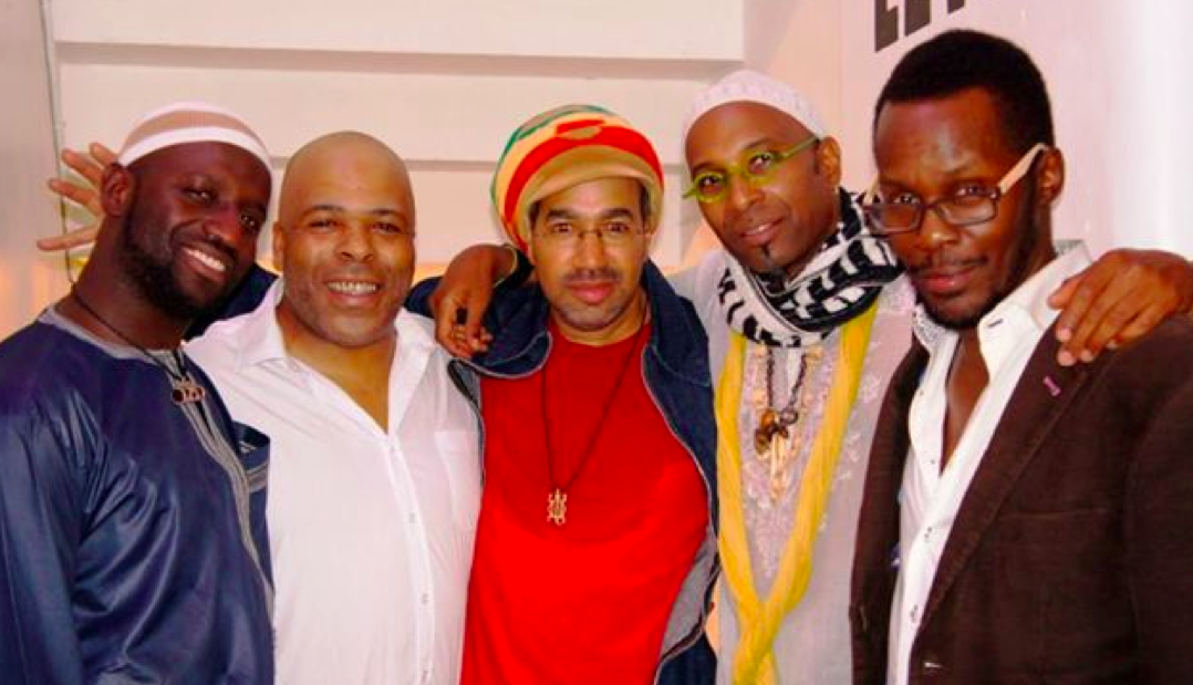 At the Bussey Building/CLF (Chonic Love Foundation) Art Cafe (in Peckham) – the Opening Ceremony was streamed and projected on a big screen via a laptop – then .. the athletes processed as a backdrop to a live performance by Seckou Keita (kora), Bussey Building wonderman Mickey Jazzheadchronic Smith (electronic beats and stuff), Marque Innamost Gilmore (drums), Omar Sosa (piano) and Steve Williamson (saxophone) ..